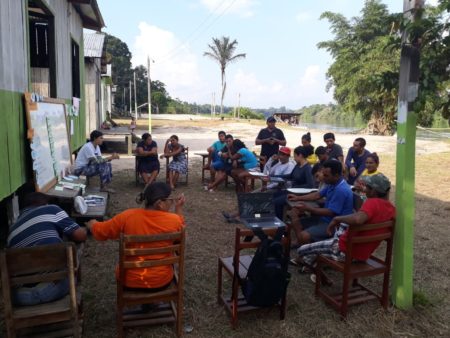 Manejadores/as da Reserva. Extrativista Ituxi, Amazonas, em roda de conversa com a pesquisadora principal do artigo publicado. (Foto: Arquivo da pesquisa de doutorado)