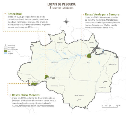 É neste contexto que a pesquisa examina sete projetos de manejo madeireiro feito por comunidades tradicionais aprovados no âmbito da IN nº 16/2011. Esses sete projetos estão localizados nas reservas extrativistas Chico Mendes (Acre), Ituxi (Amazonas) e Verde para Sempre (Pará). Esses foram os primeiros projetos aprovados sob a normativa do ICMBio.